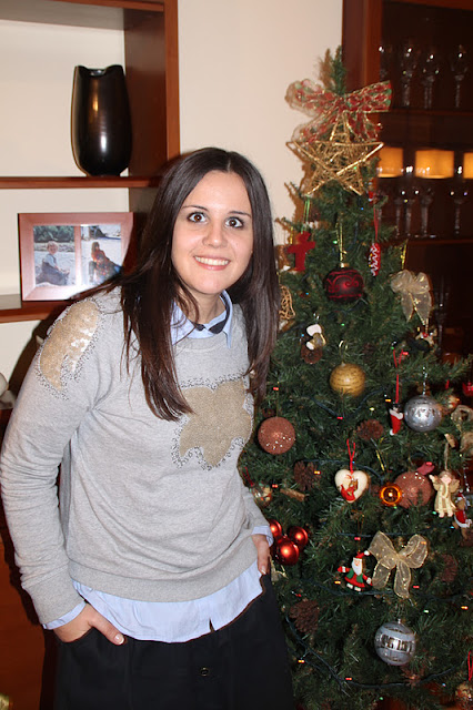 Este es el outfit que llevaba para la comida de Reyes. El suéter es de Mango, regalo de Reyes, la camisa es de H&M, la falda de Stradivarius (old) i las bailarinas de Zara Kids (realmente llevaba unos botines de Blanco, pero ya no aguantaba más!!)